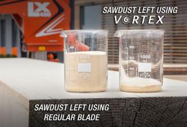 Pilový pás Vortex odstraňuje při řezání prach, aby minimalizoval nebo vyloučil potřebu odstraňovat piliny poté co je řezivo zpracováno.
