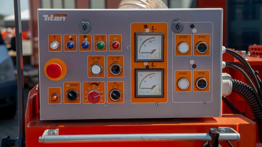 Navíc k individuálnímu ovládání motorů má konzola také ampérmetr pro měření zatížení vřeten a regulátor rychlosti podávání až na 15 m/min.