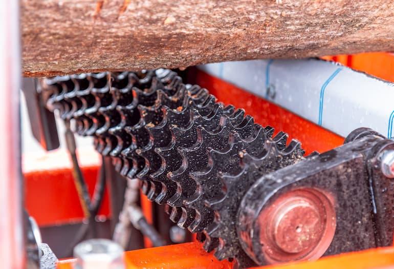 Hydraulické čerpadlo 5.5 kW pro těžký provoz účinně zvládá manipulaci s kmenem se dvěma poháněnými válečky na dvojitých hydraulických válcích pro snadnější polohování kmene na příčkách lože, obousměrný řetězový obraceč pro pohotové otáčení těžkých kmenů a tři dvojité svislé opěry pro zajištění větší stability pro upínání a obracení kmene.