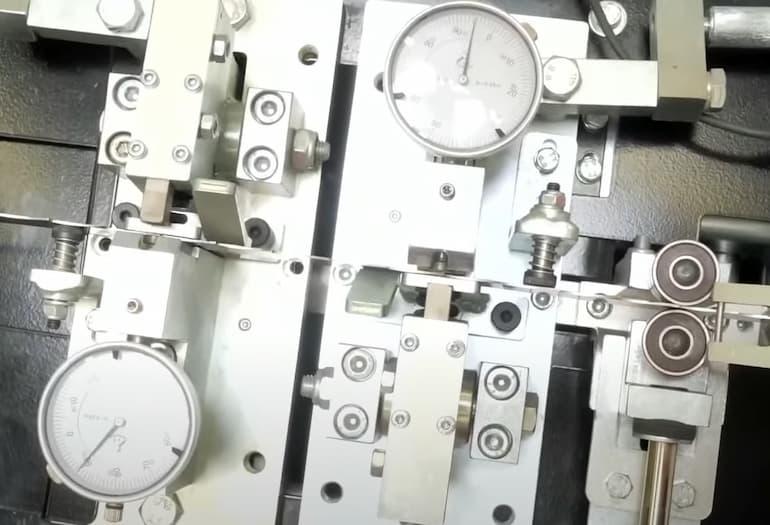 Podstatné je seřídit správnou polohu zarážky, která zastavuje pilový pás a nastavit správný bod pro ohýbání zubu. Číselníkový úchylkoměr ukazuje hodnotu nastavení šranku zubu. A opěrná ramena držící pilový pás vyžadují přestavení podle šířky pilového pásu.