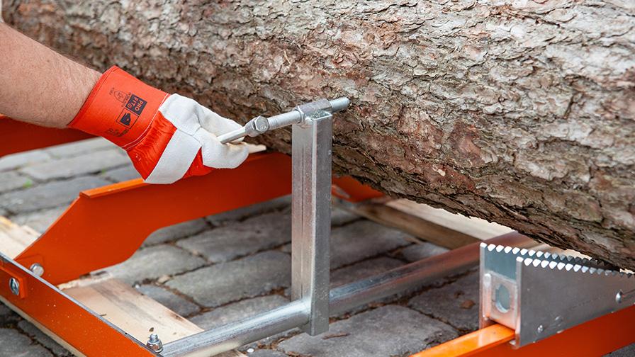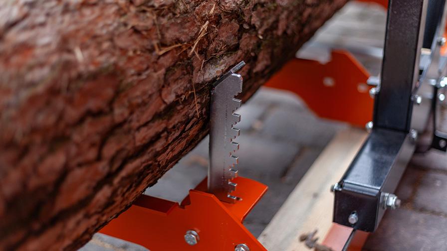 Model LX30 se snadno smontuje. Lože je usazeno na dřevěných trámcích, které udržují pilu během provozu v klidu. Lože je umístěno nízko nad zemí, což usnadňuje zakládání kmenů. Je vybaveno dvěma silnými ocelovými nosníky a pěti příčníky. Jakmile je kmen založen na lože, přitlačte jej ke dvěma stavitelným bočním opěrám a zajistěte středovým upínáním. Nyní jste připraveni začít řezat!